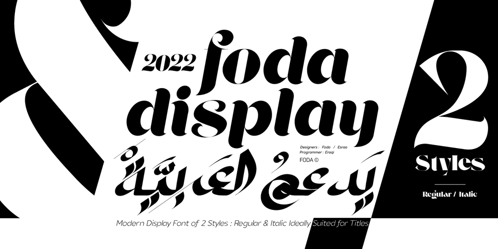 Foda Display typeface for Latin and Arabic is a modern calligraphy and one of FoDa foundry new creations, that is suited for branding, logos, packaging, advertising, social media designs, posters, wedding invitations and more...