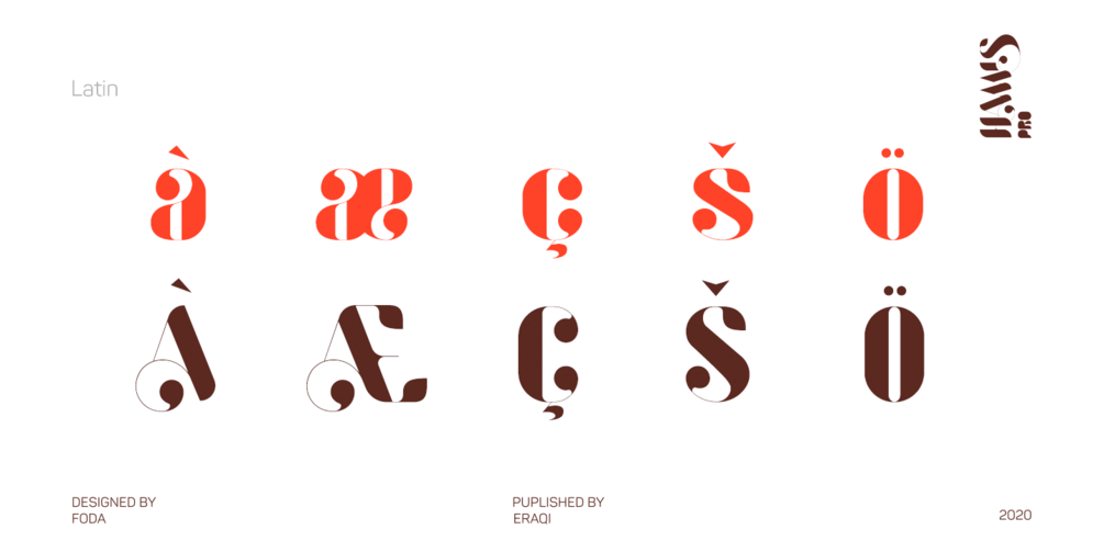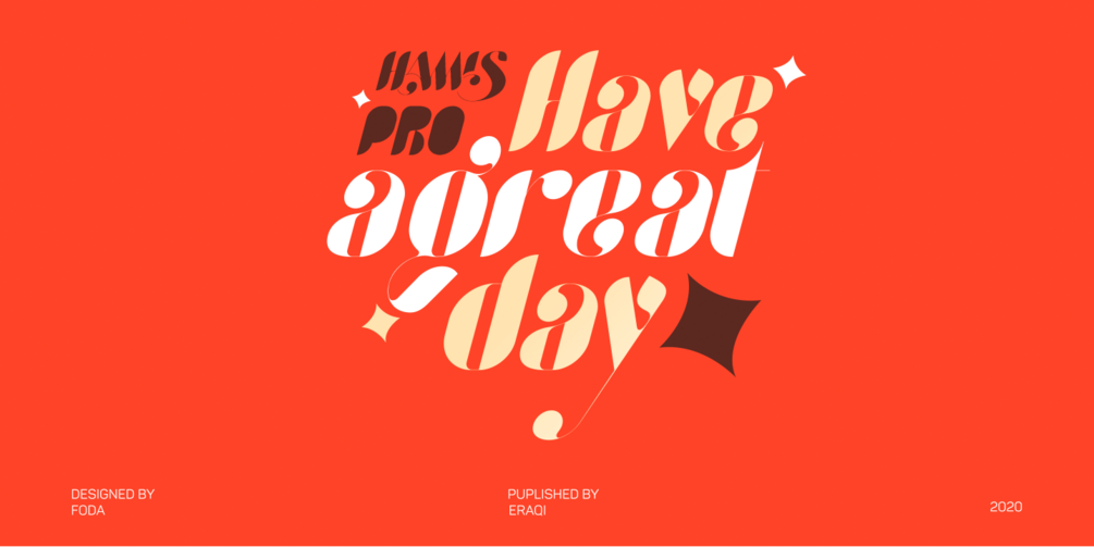 Hamis Pro is an advanced typographical support with features such as ligatures, case-sensitive forms, fractions, super and subscript characters, and stylistic alternates.