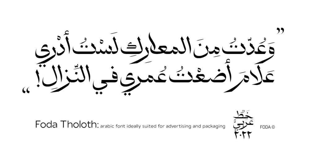 Foda Tholoth font is to reflect the beauty of its original Arabic and Islamic calligraphy.